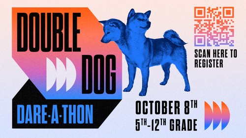 Double Dog Dare-a-Thon is an invest and invite event happening this October. The goal is to provide students with a fun opportunity to invite a friend to join them at Takeover! Parents, this is the perfect opportunity for you and your students to start having conversations about who in their lives they would like to begin sharing their faith with.