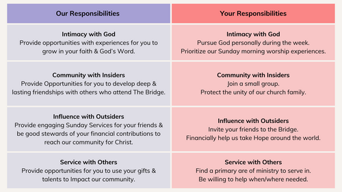 There are MANY reasons every believer should commit to a local church family! But the most practical reasons are found in Ecclesiastes 4:9-12 when it says, “Two are better than one…”. When you meet with your church, you gain motivation and encouragement from other believers, and you provide motivation and encouragement to them. So, if you call The Bridge your church home we highly encourage you to take your next step with us and become a partner. We believe that all Christ-followers should belong to a local church, and we want to partner with you to invite everyone to know & follow Jesus.