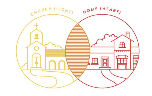 Two combined influences make a greater impact than just two influences. When the light of the church (yellow) combines with the heart of the home (red) you get a stronger, more vibrant impact in the life of a kid (orange).